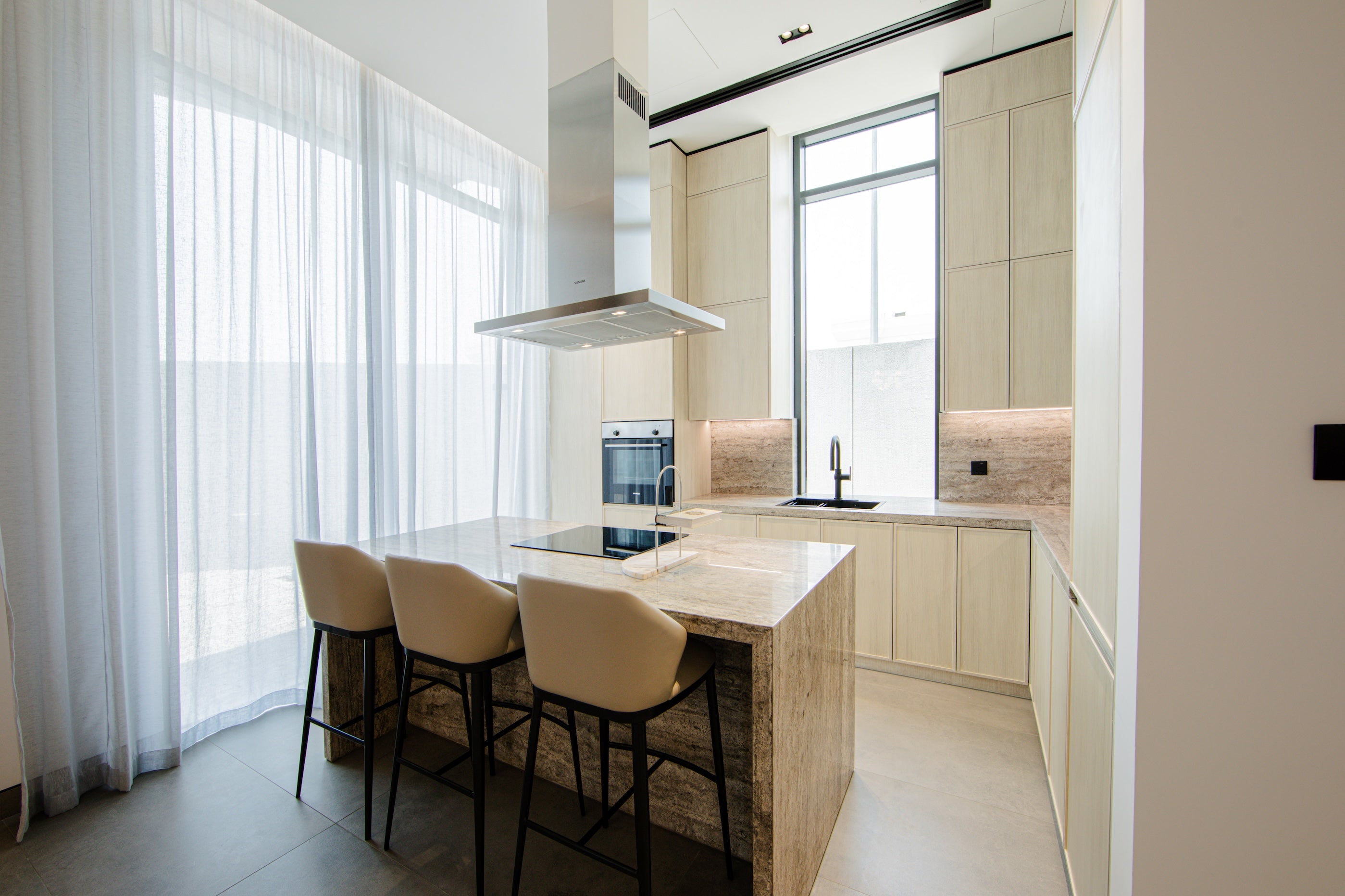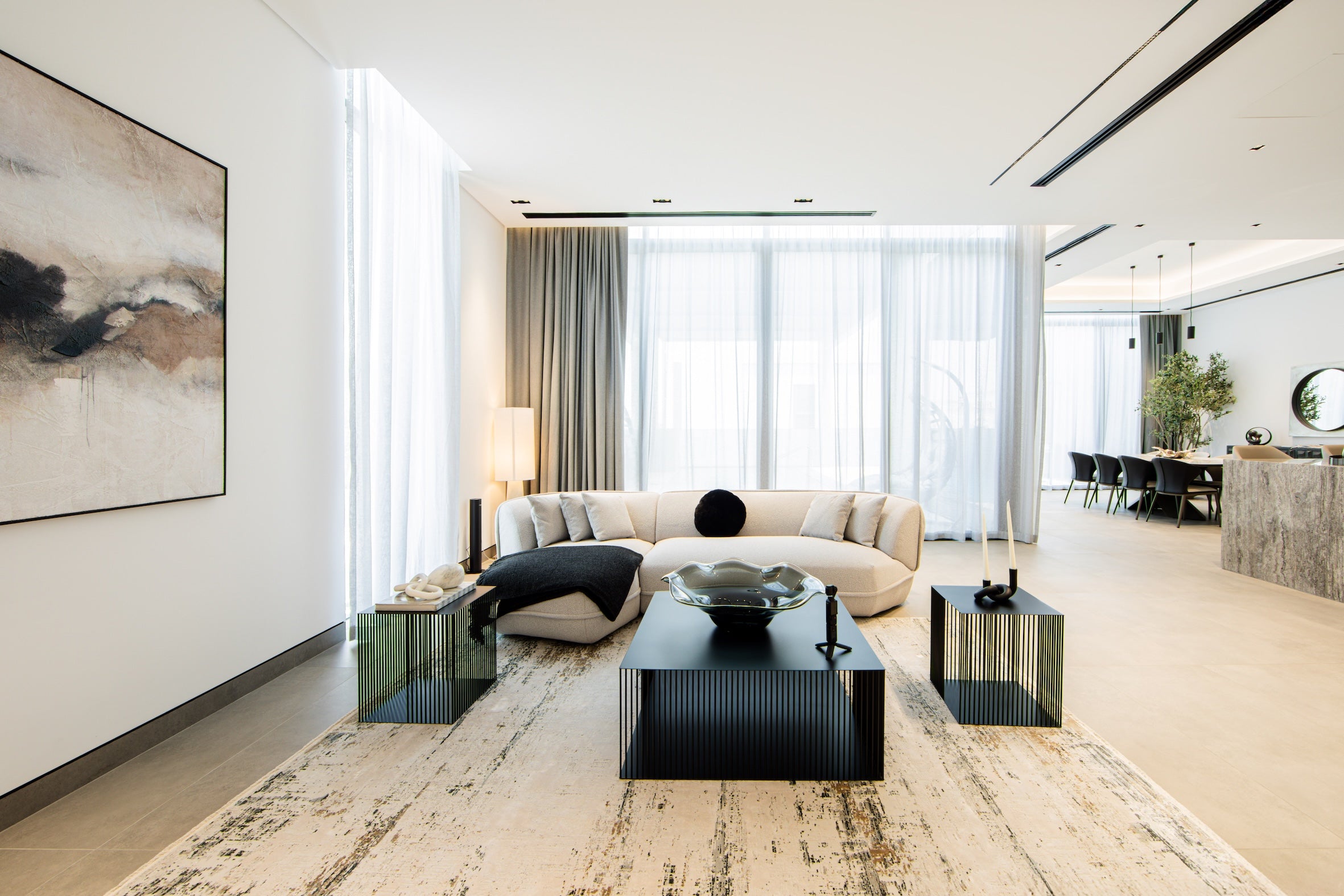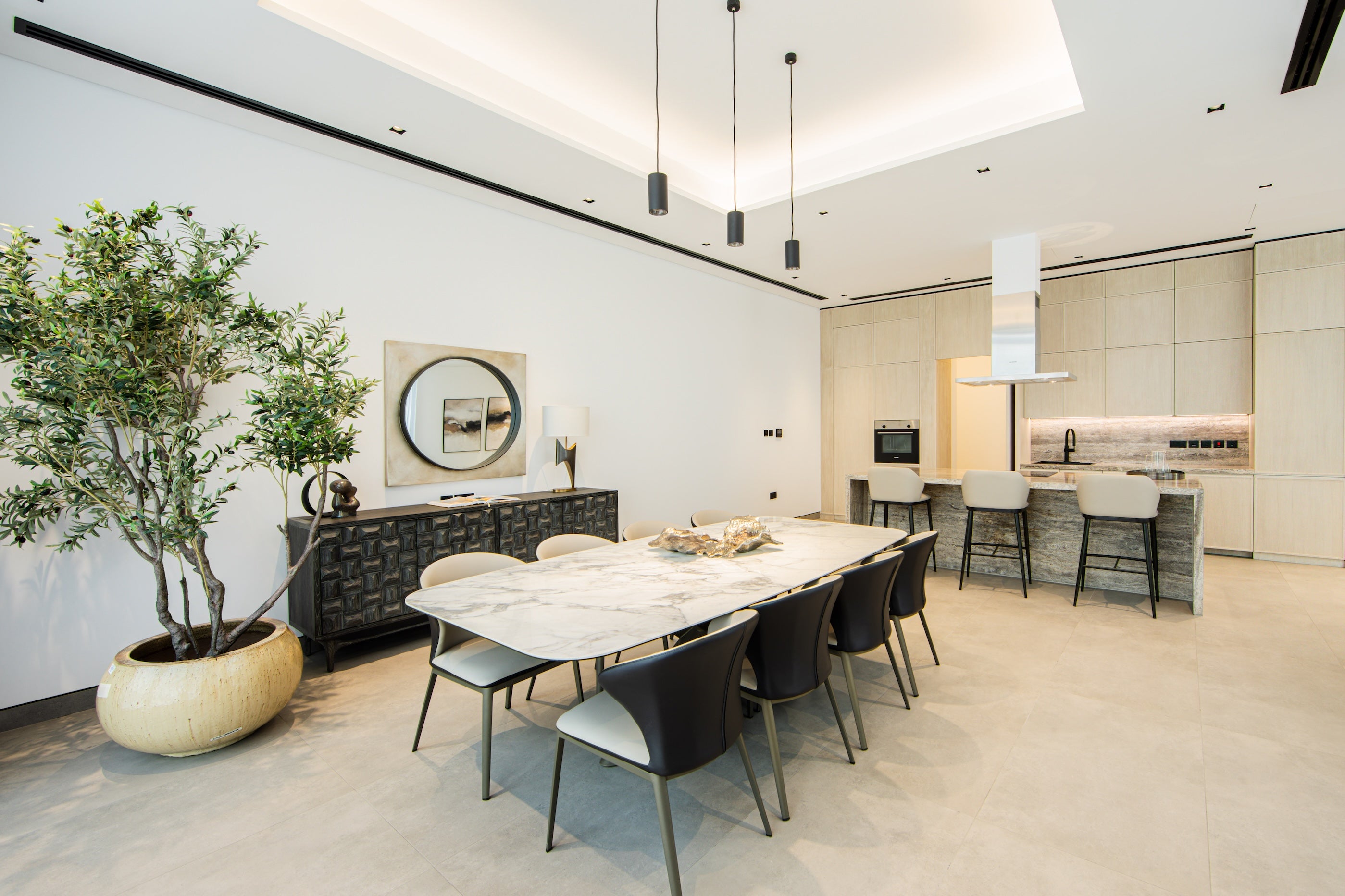 Bright and airy living and dining spaces complemented by an open-plan kitchen.