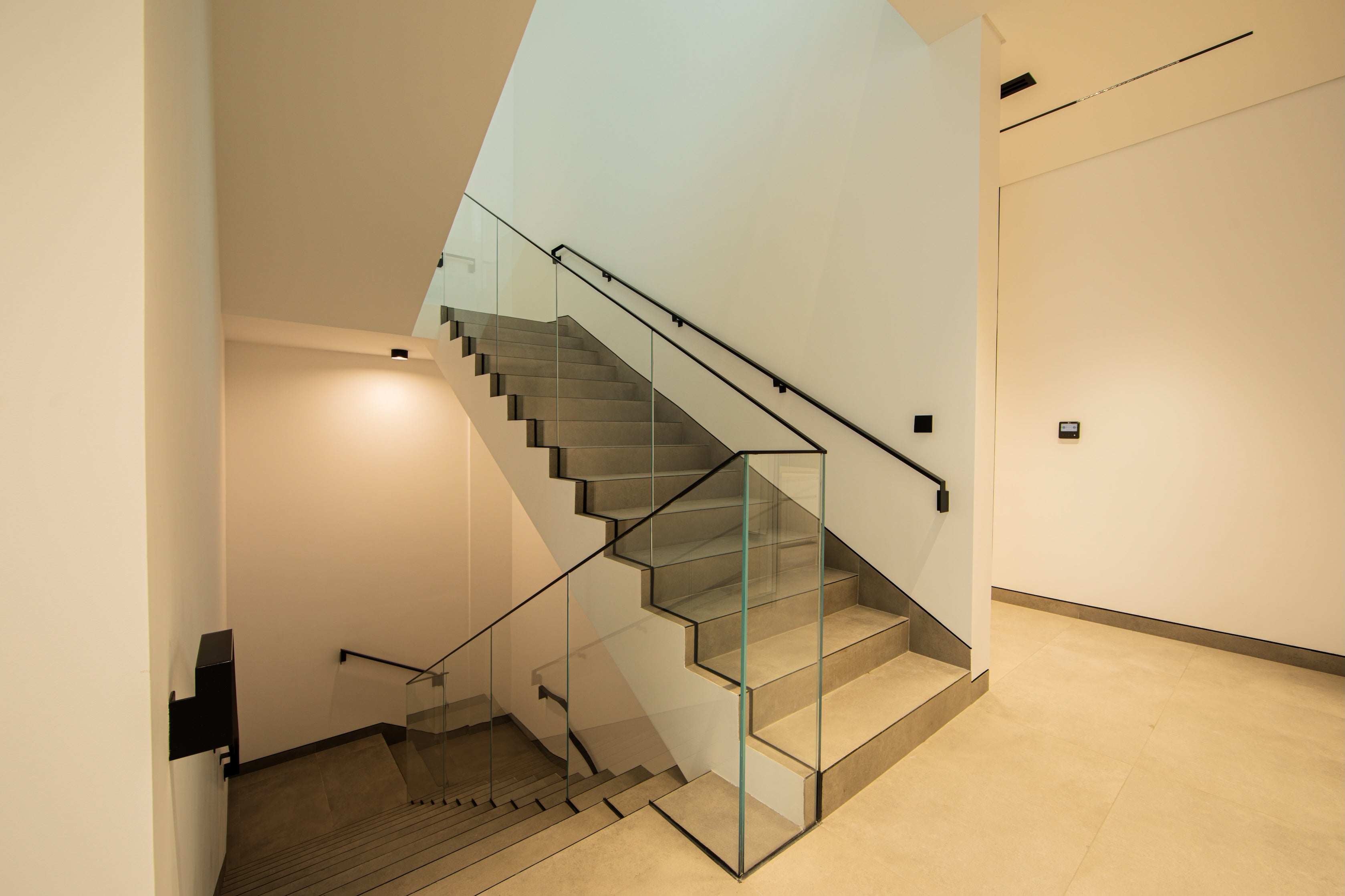 A staircase leads to the top-level rooftop terrace, offering ample space for outdoor gatherings or serene moments of privacy.