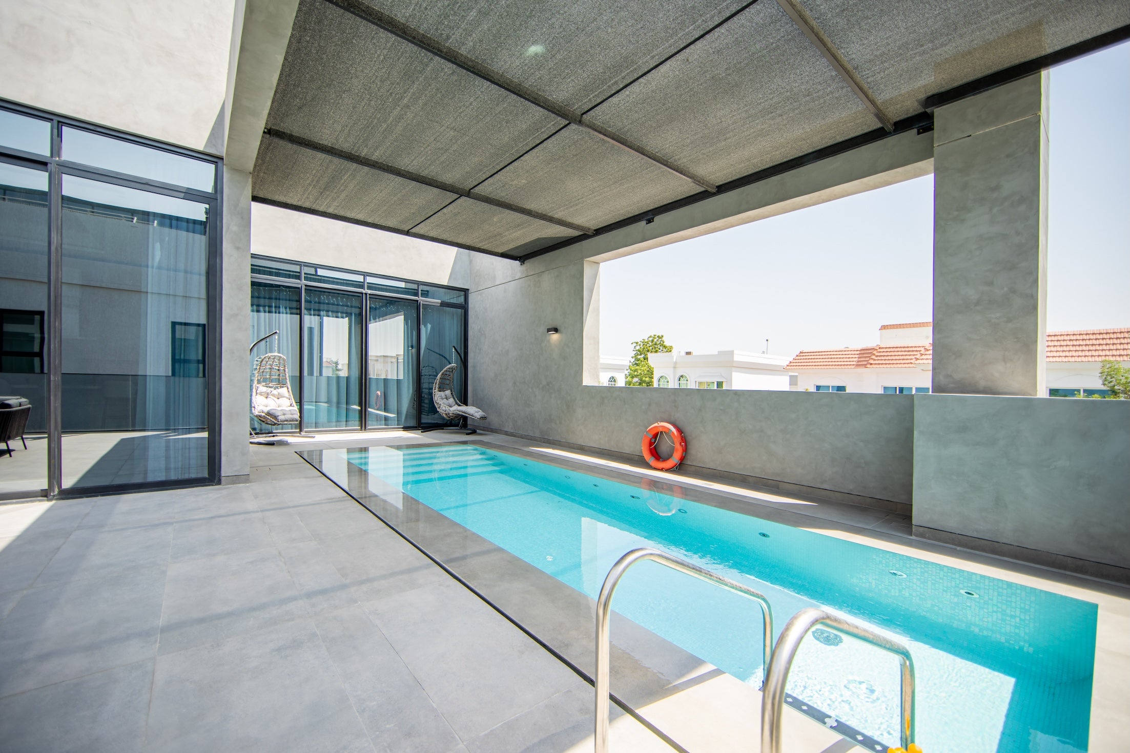 Step outside to a private terrace, seamlessly leading to the exclusive private pool.