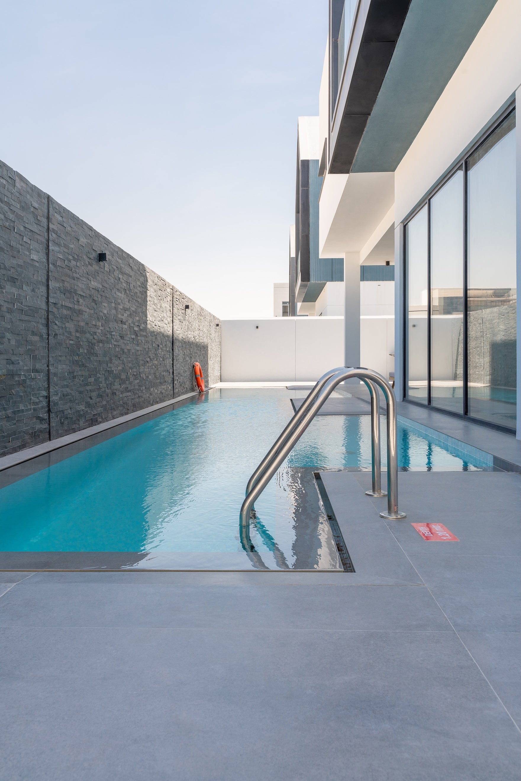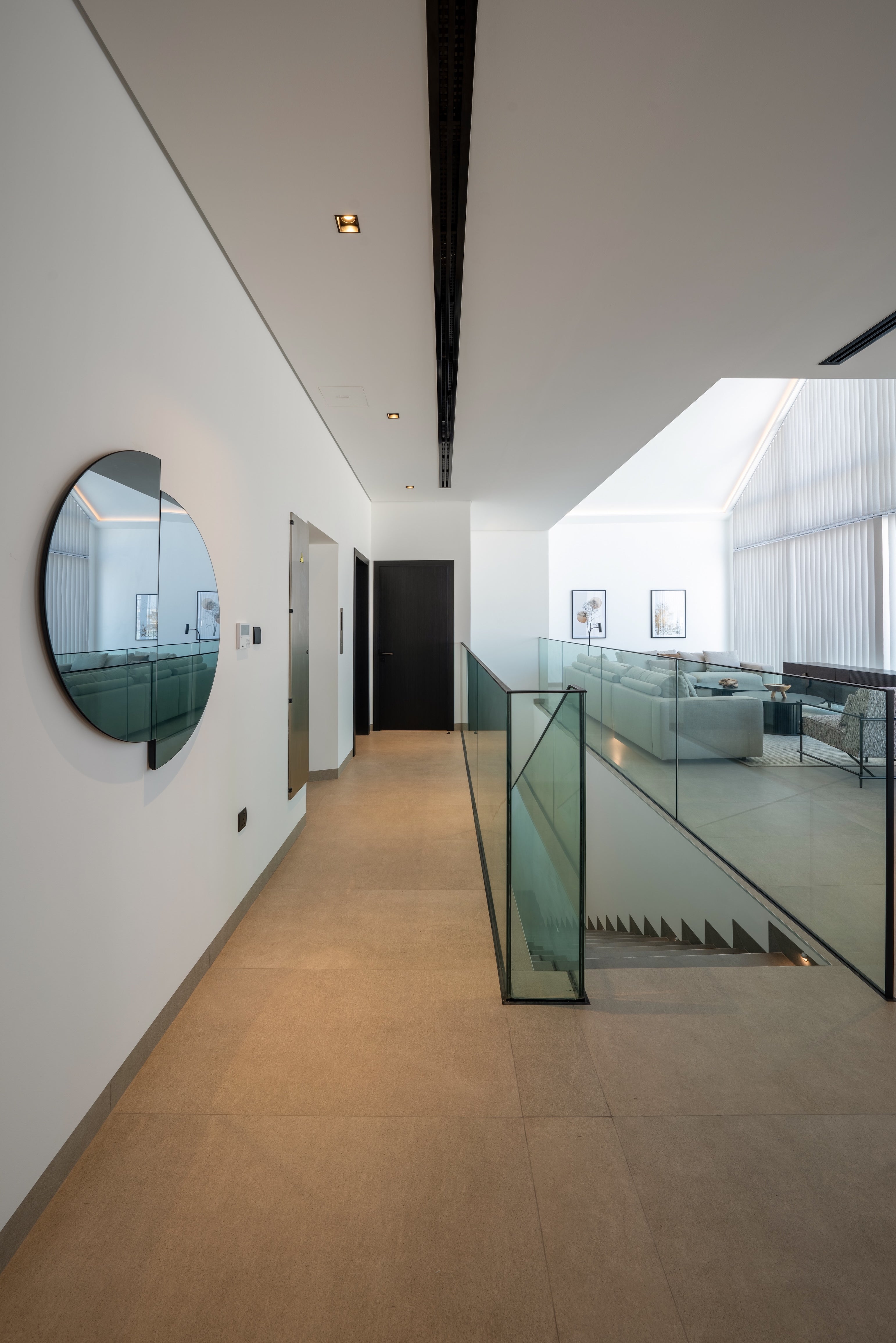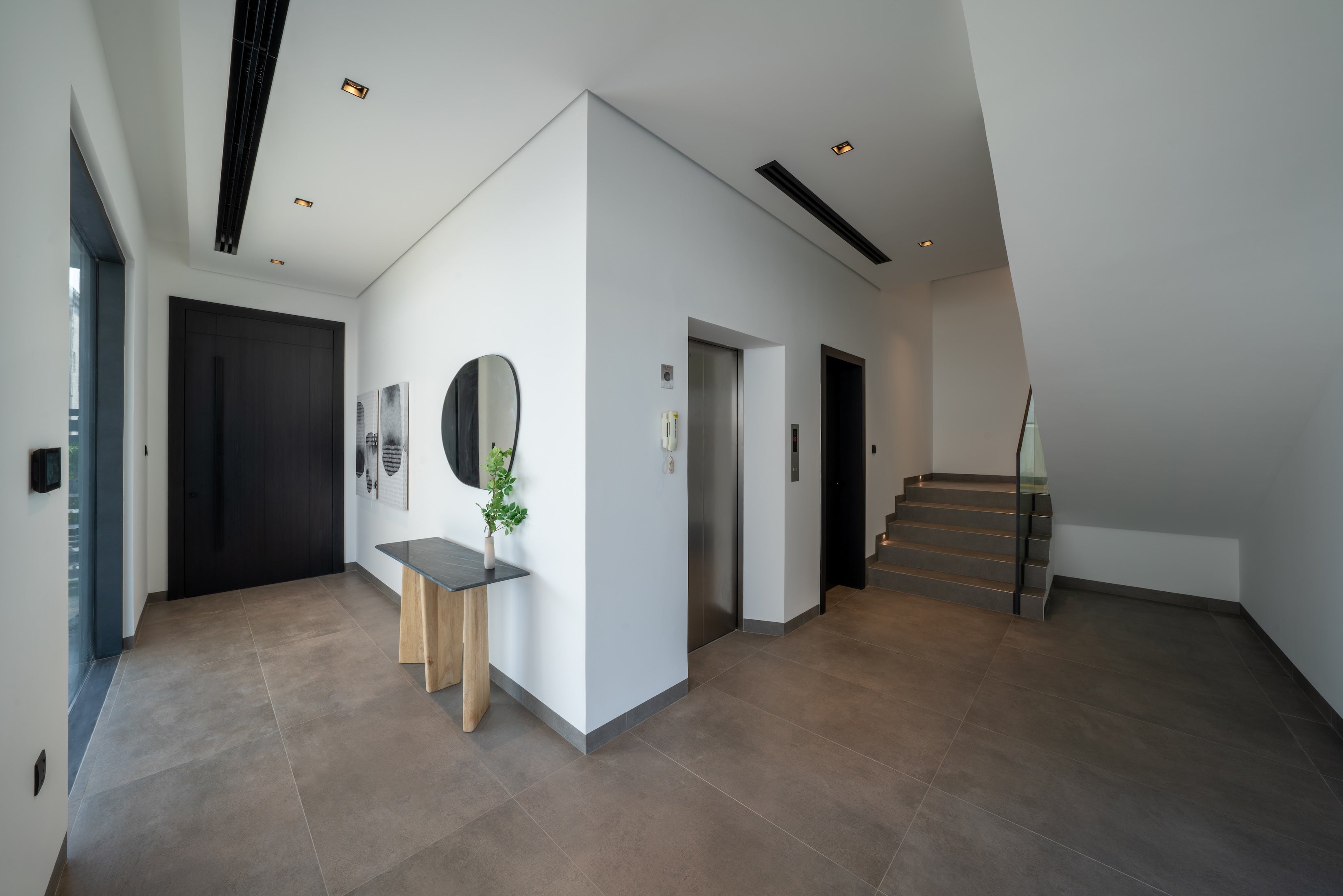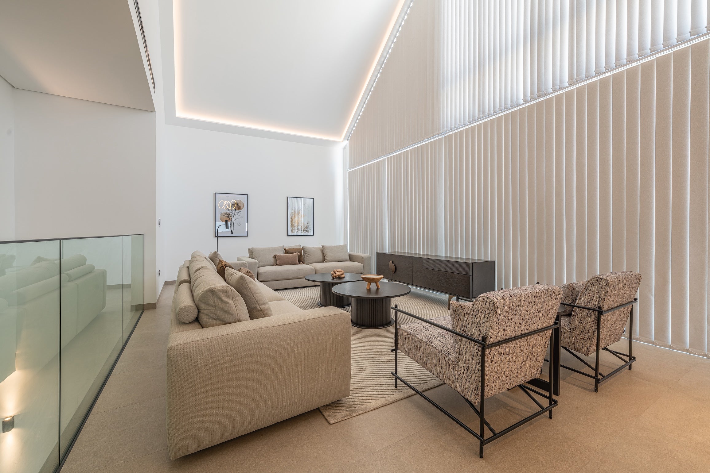 Each standalone villa sits on a private plot and includes a 15m private pool, private elevator, high ceilings, and a bright open-plan layout. The contemporary aesthetic is paired with spacious outdoor areas and refined architectural details.