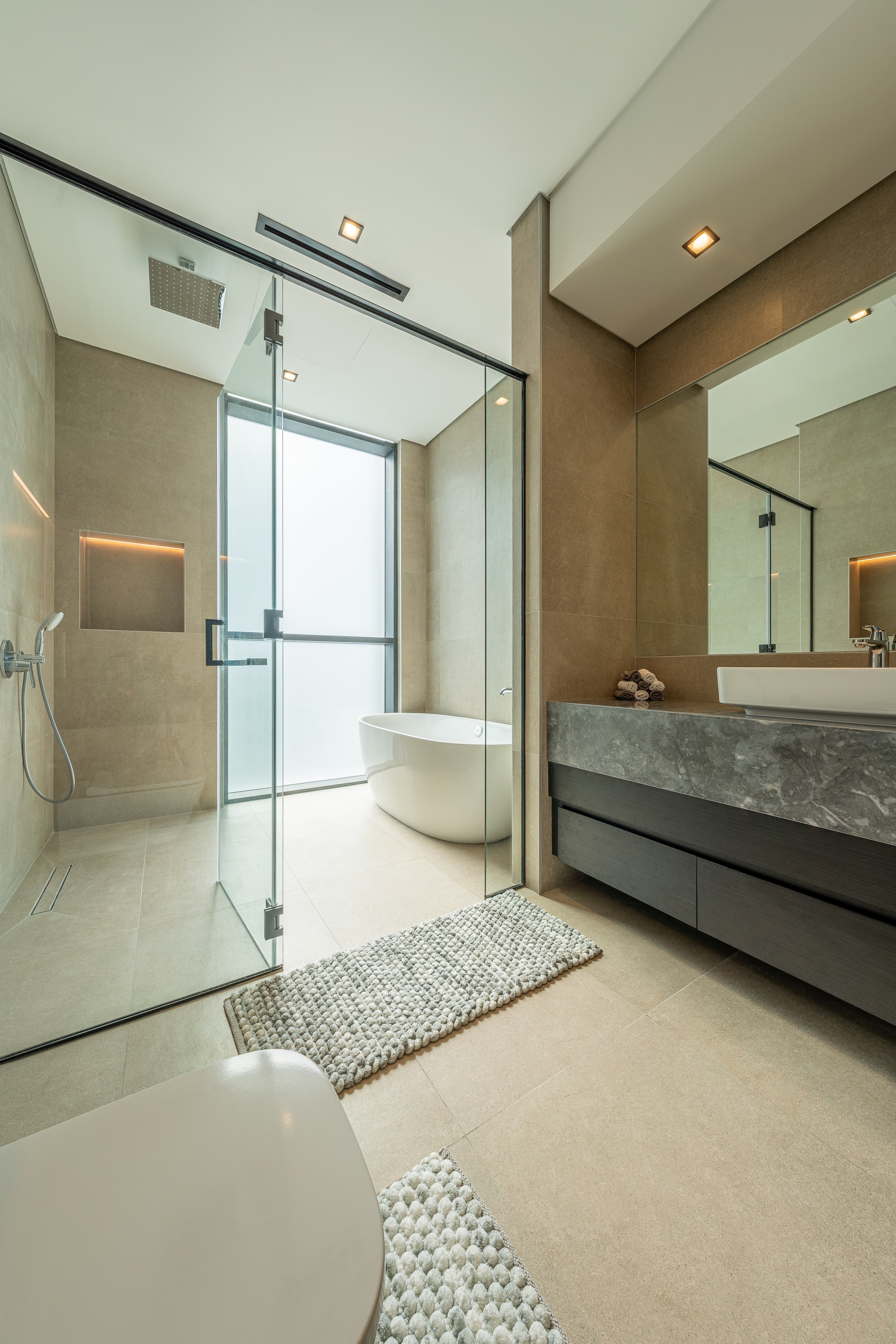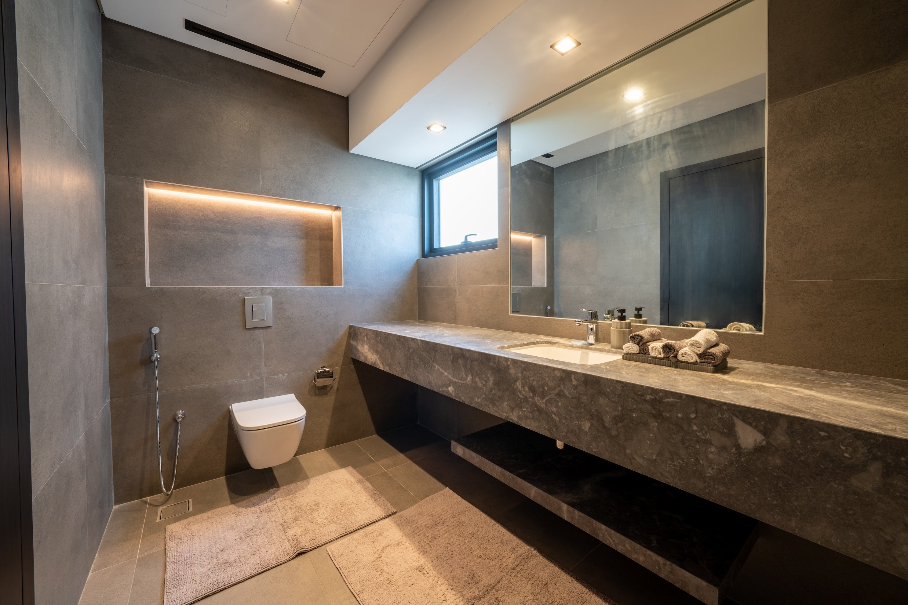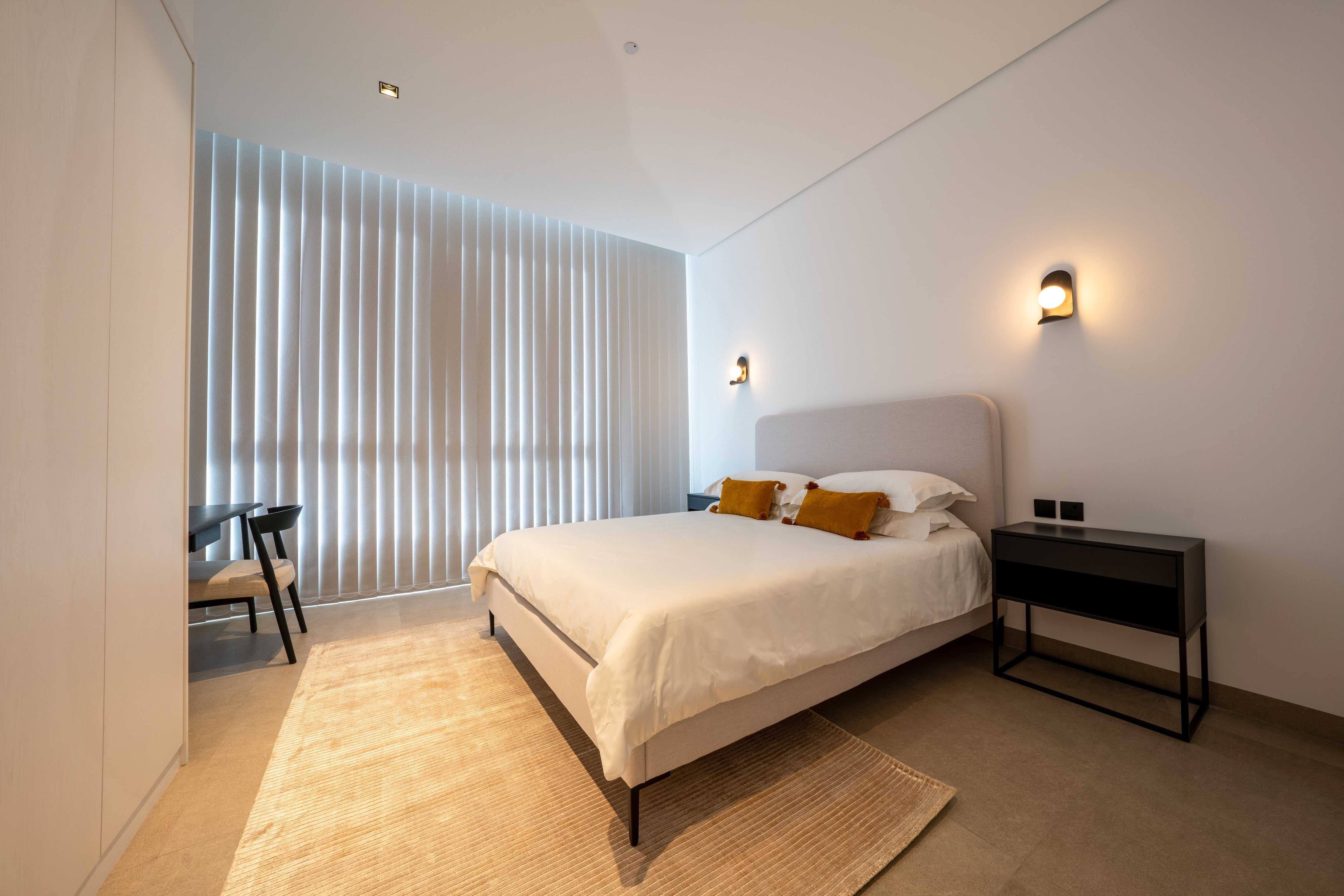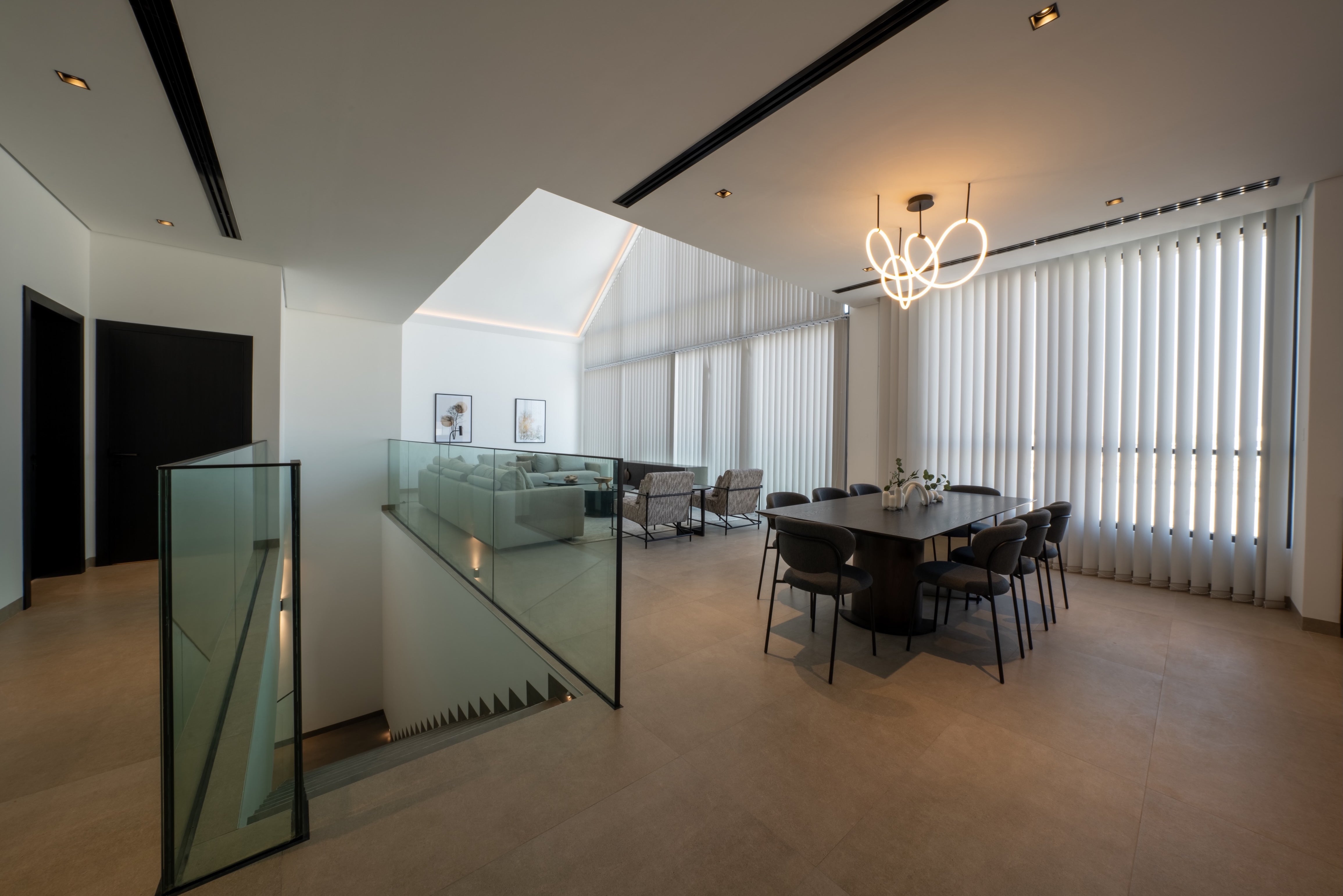 Each standalone villa sits on a private plot and includes a 15m private pool, private elevator, high ceilings, and a bright open-plan layout. The contemporary aesthetic is paired with spacious outdoor areas and refined architectural details.
